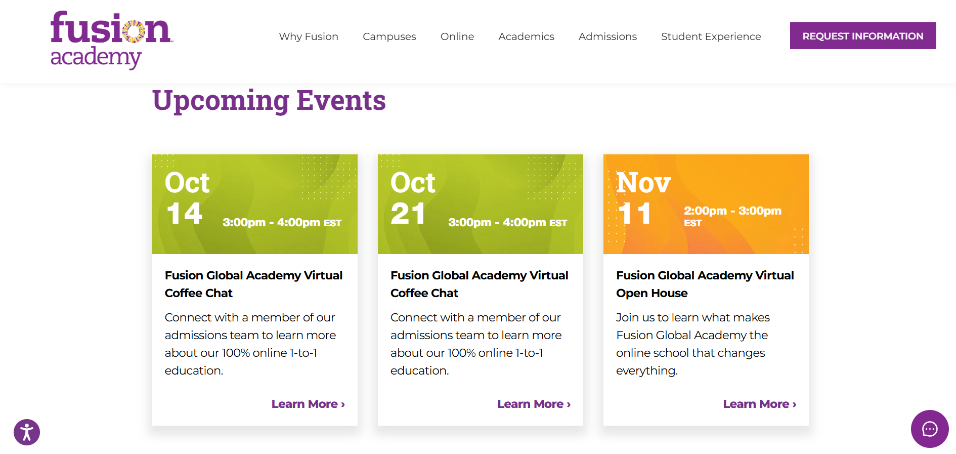 Fusion’s existing web infrastructure needed a complete redesign to match its personalized education model. The previous website lacked accessibility compliance and had complex navigation that made it difficult for parents and students to explore programs or request information easily.